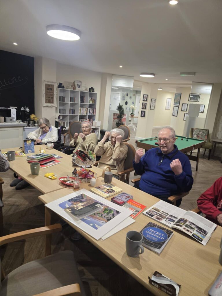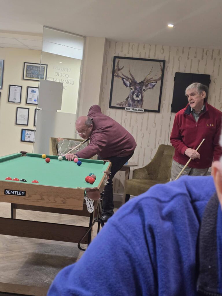 Today we have enjoyed reminiscing with Greg, worked up an appetite before lunch doing some gentle chair exercises, squeezed in some quiz questions and music and enjoyed a game of snooker!