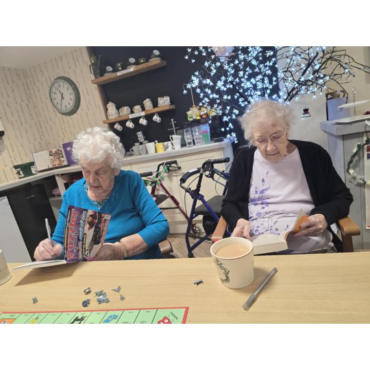 Muriel, John and Dorothy joined Margaret, Edna and Jeanette in the community room where we chatted about Christmas, completed some puzzles and enjoyed a music trivia quiz, all with brews, biscuits, crisps and lunch in between![]()