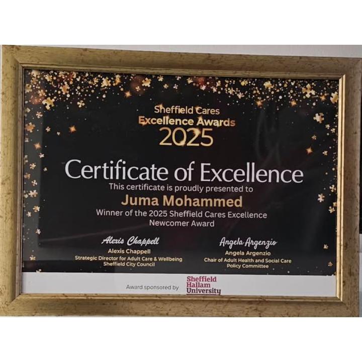 Juma Adam one of our Male night carers was nominated by Sector routeways for how well he has done since joining the sector.