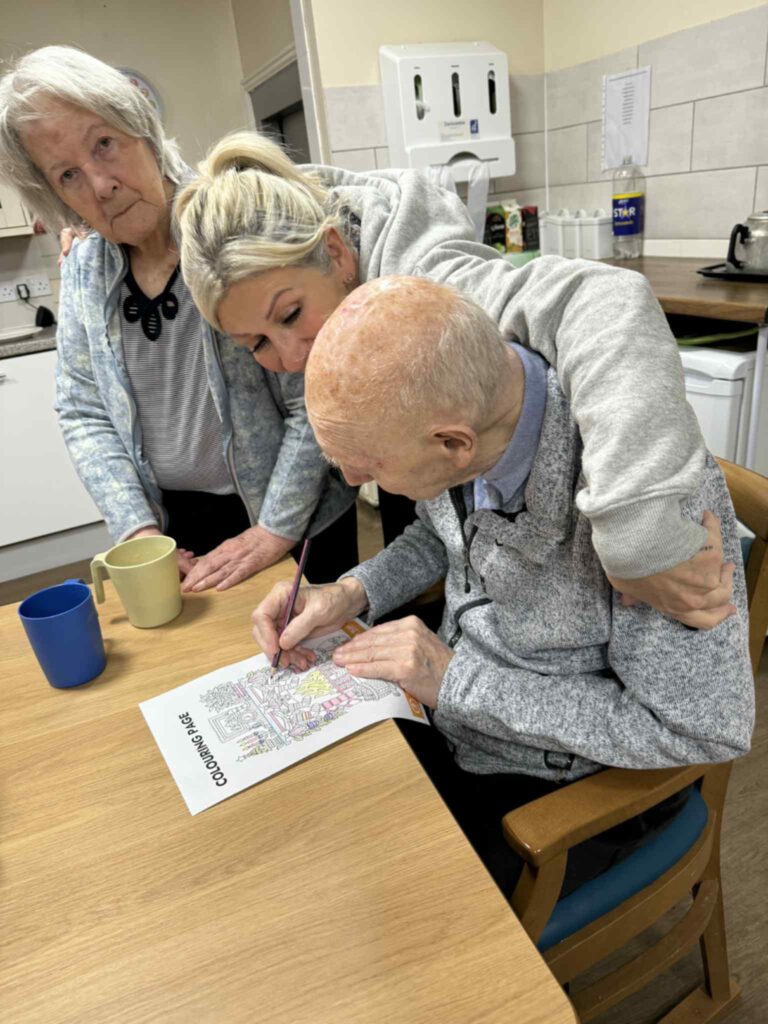Some residents enjoying the festive colouring from our oomph packs