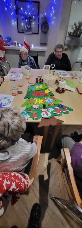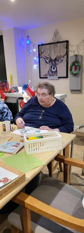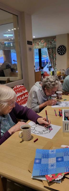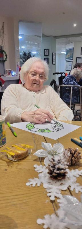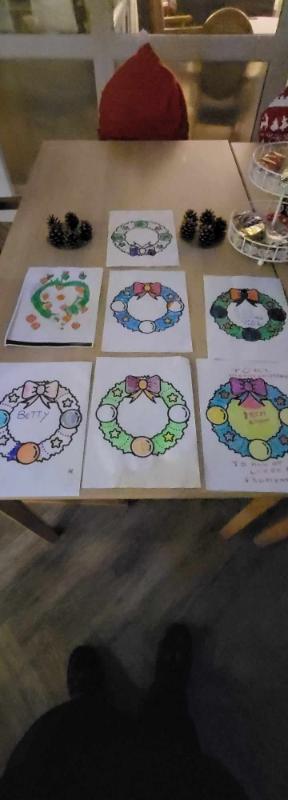 The shared photo captures the essence of the day as our residents engaged in delightful coloring activities. With their creative flair, they adorned Christmas wreaths and designed beautiful Christmas trees, infusing the room with festive cheer.