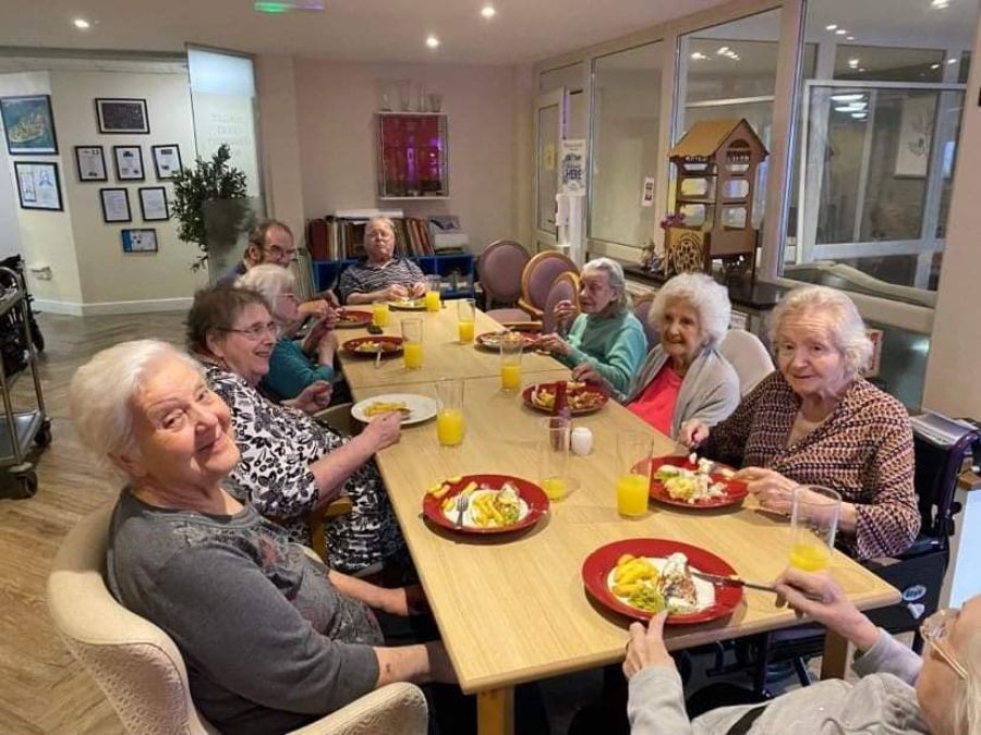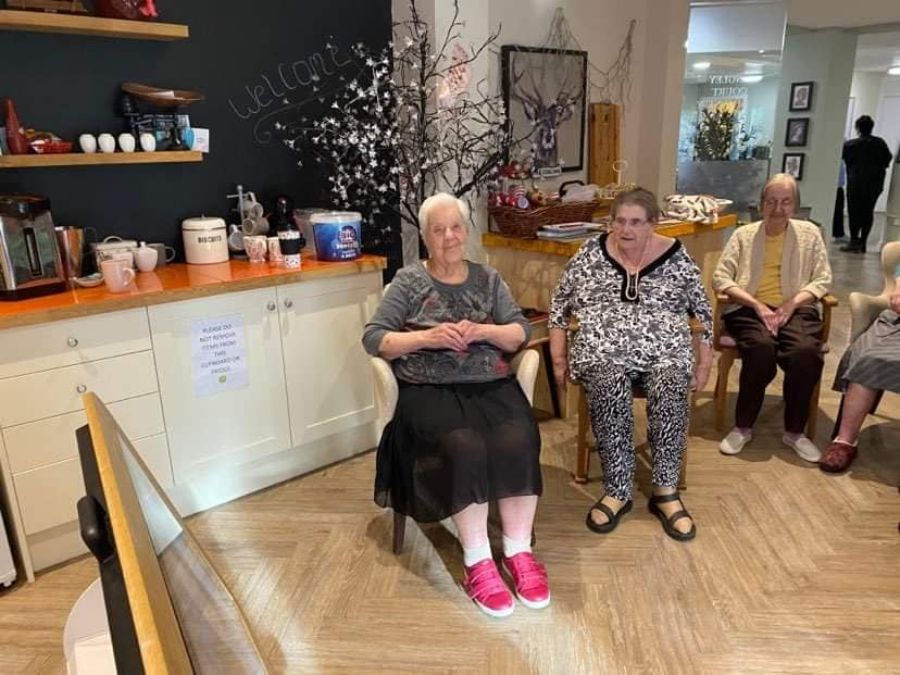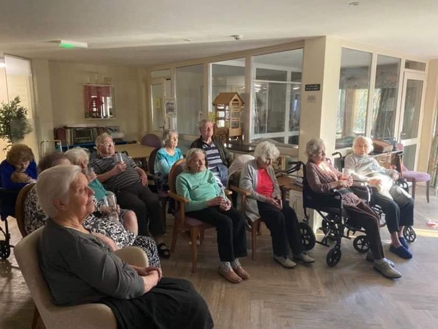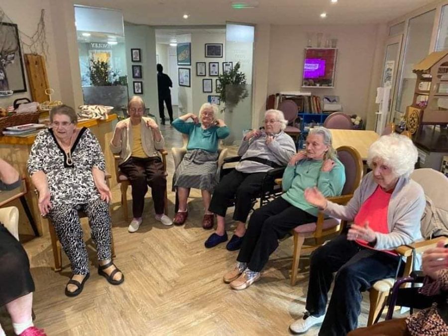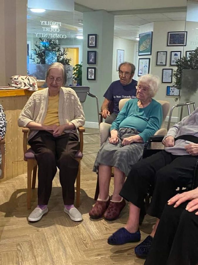 We had a Friday full of fun in the community room! Exercises, fish and chips, and movies!