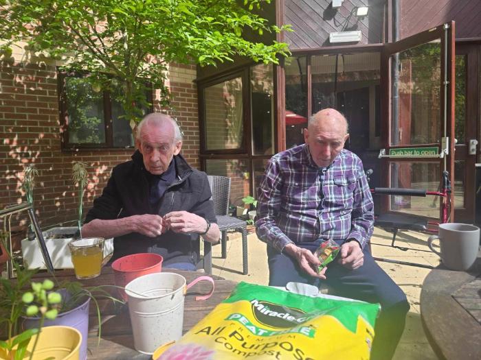 This morning Ken, Neil, David, Betty, Muriel and Cath enjoyed planting some seeds and Muriel replanted Dennis’s lovely flowers for him that he got over the weekend, it was lovely spending the morning in the garden enjoying the sunshine! After dinner, Anne requested to spend the afternoon playing Annes favourite game scrabble with Hannah in the garden too.