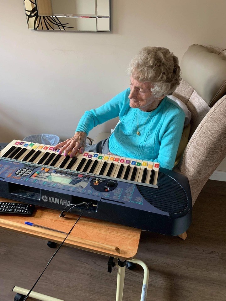 If you hear lovely music when you’re visiting and wonder where its coming from….? Betty loves the piano but as we don’t yet have one, she enjoys and makes the most of the keyboard instead.