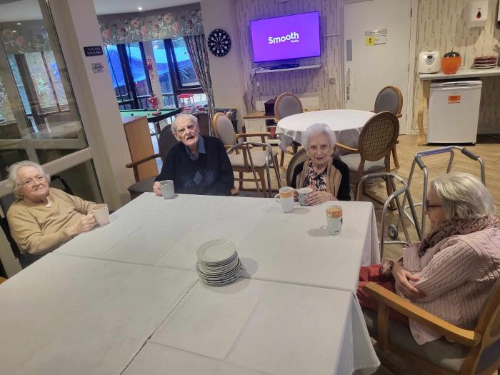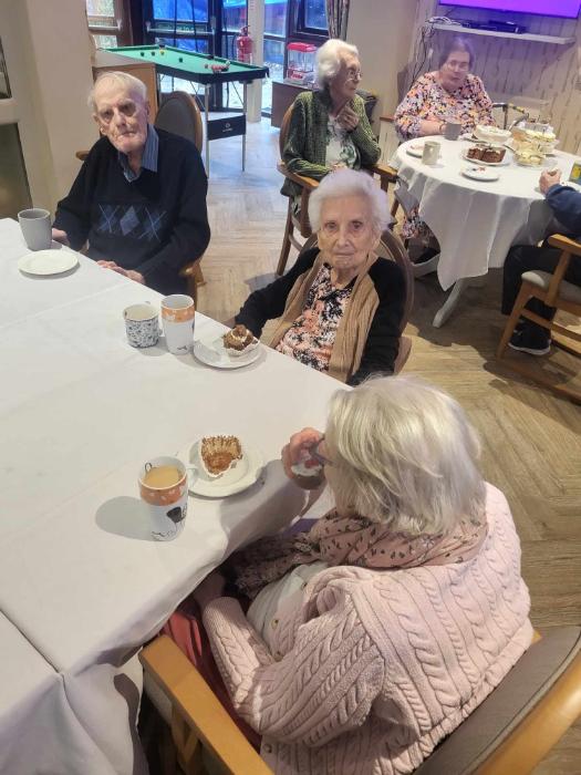 We enjoyed the coffee morning thanks to Ros for our buns. We were looking back at things and talking about growing up with rationing and the war whilst listening to music from the 50s and 60s, then we played bingo this afternoon after dinner before enjoying a brew and snacks. Muriel had never played before and won a line and a full house, she was over the moon!
