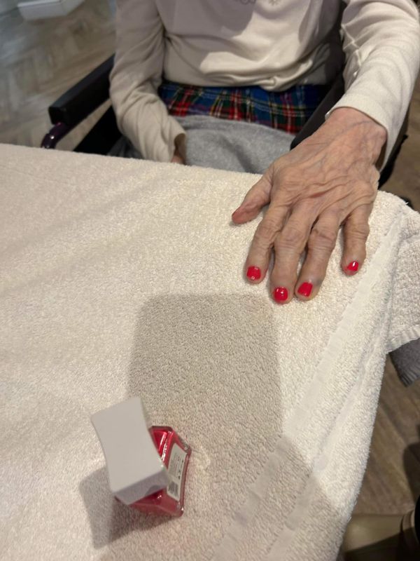 The community room at our care home transformed into a haven of relaxation and entertainment as residents gathered for a delightful movie time. With refreshing drinks to beat the summer heat, the atmosphere was perfect for unwinding. Meanwhile, Joyce indulged in a pampering hand massage and had her nails beautifully painted, adding a touch of elegance to the afternoon. It was a wonderful blend of leisure, comfort, and self-care, fostering a sense of well-being and creating lasting memories.