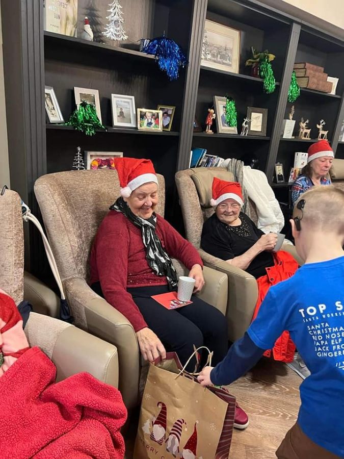 Today we had our first party. Thanks to those that came it was lovely to see you all. Zak came to visit his great nan and was a great help sharing the presents from Dunelm Mills Sheffield wood seats and the local community. Thank you, Zak!