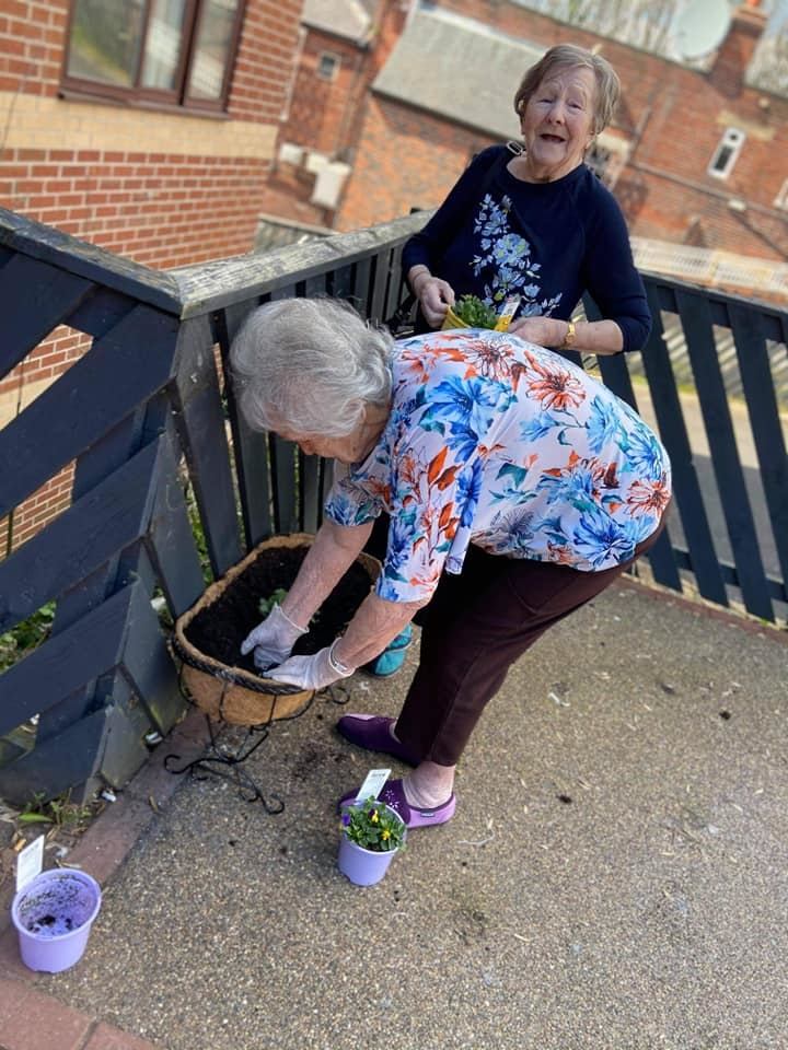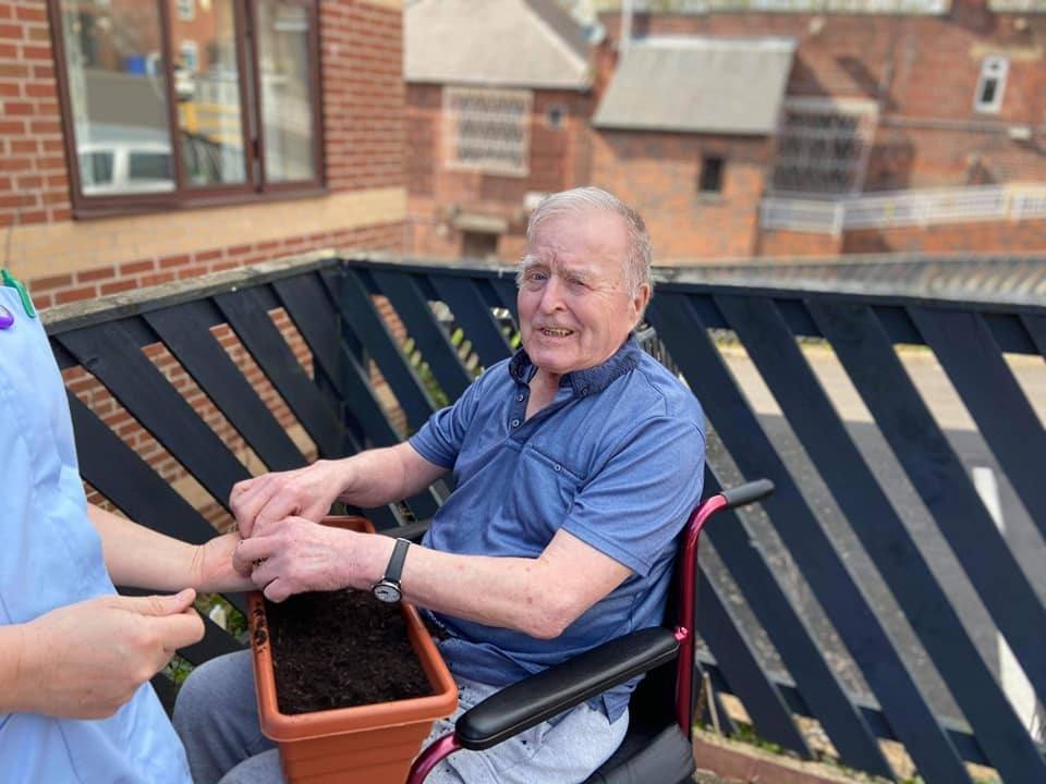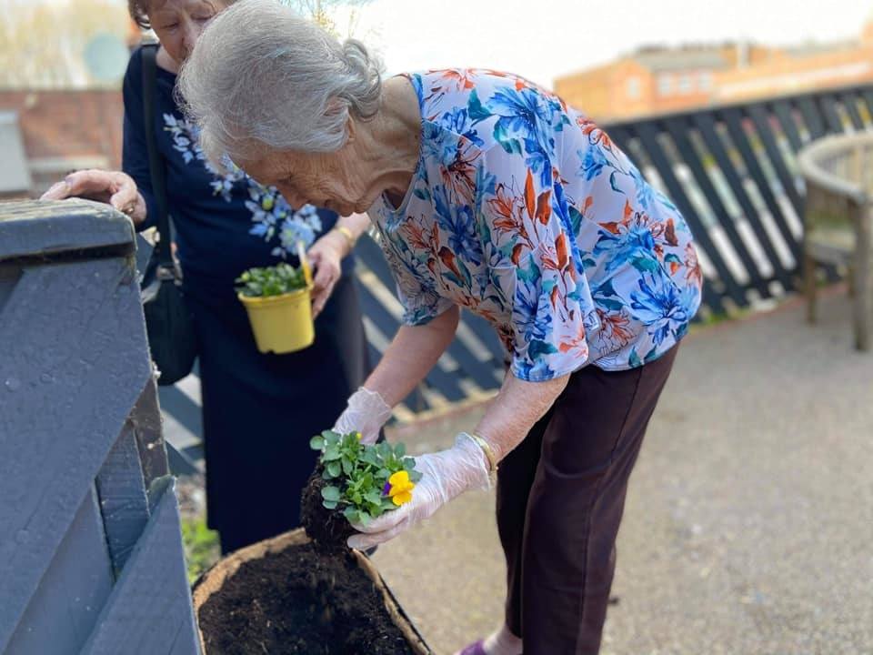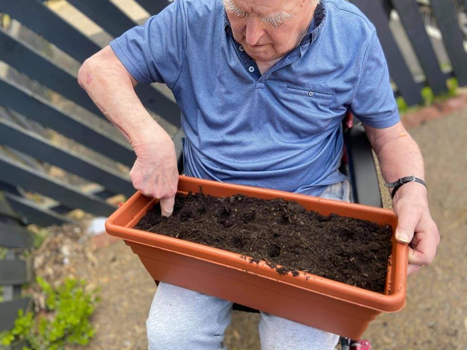 Thank you to Morrisons for a welcome donation of seeds and bedding plants which turned out to be perfectly timed with the delivery of four new planters for our garden. The residents were keen to see we made the most of them so they went out and got busy with planting them up!