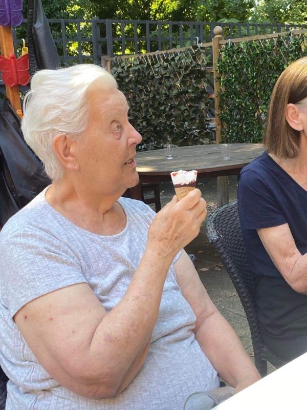 We had a visit from Rambo today and enjoyed time in the courtyard with a cornetto.