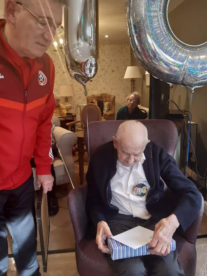 We had a lovely time helping him celebrate with balloons, a cake, and a special visit from non other than Sheffield United legend, Tony Curtis, all followed up with a party complete with songs from yesteryear.