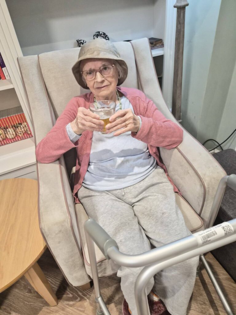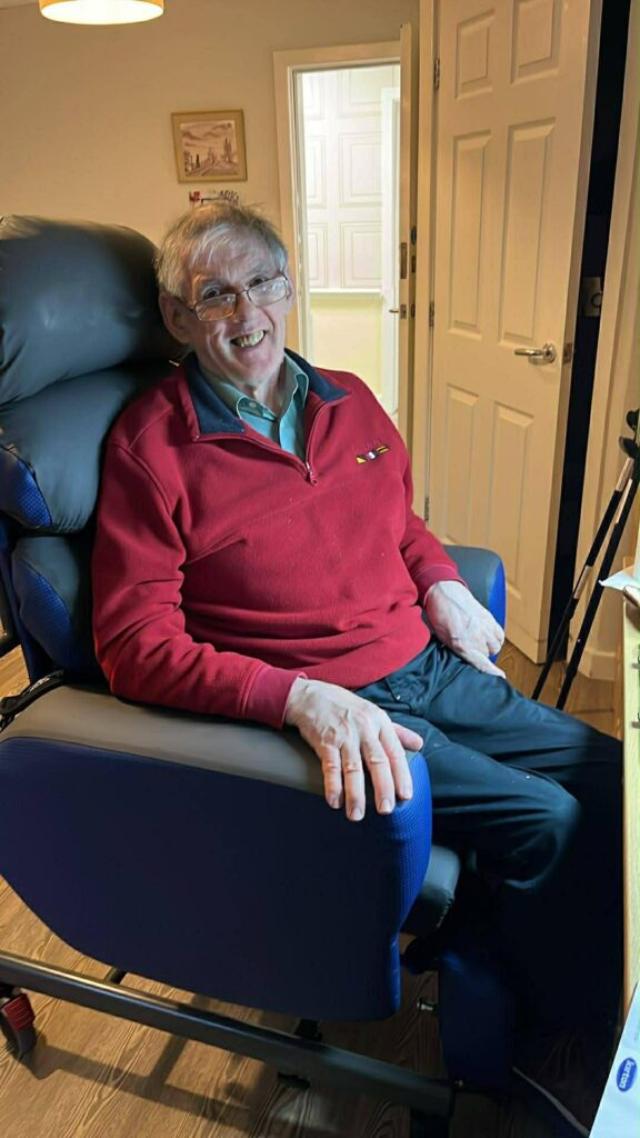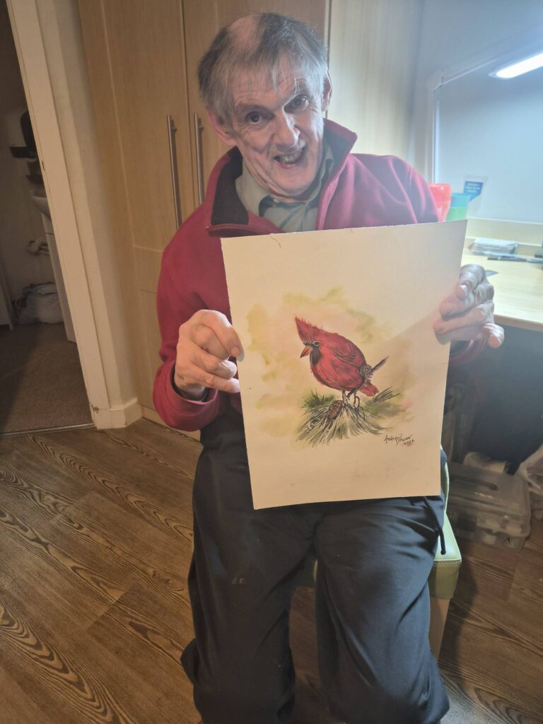 Andrew with his latest art work and loving his new chair